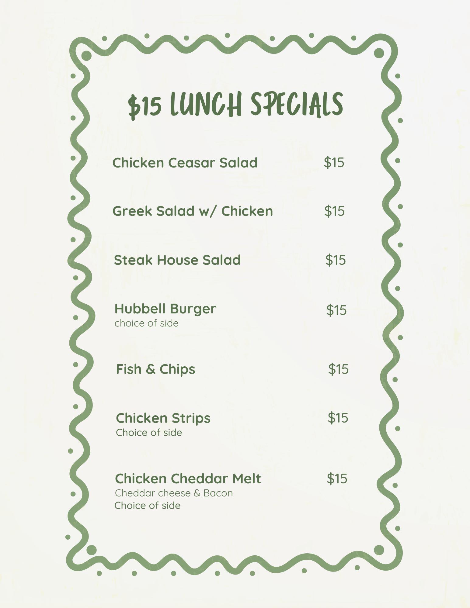 $15 Saturday lunch Specials