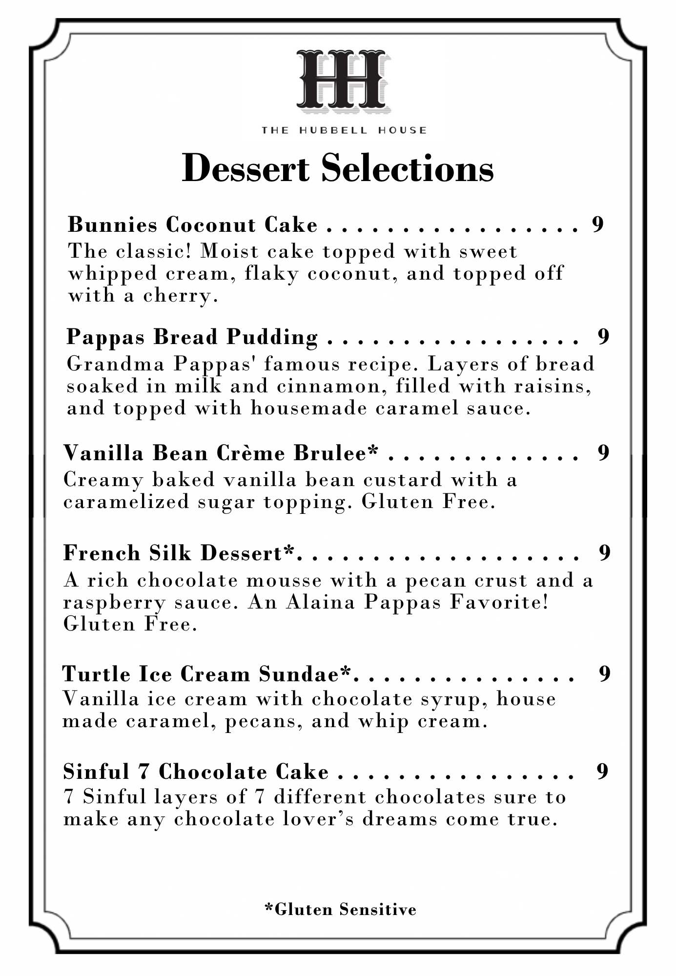 *Items may be prepared gluten sensitive.
